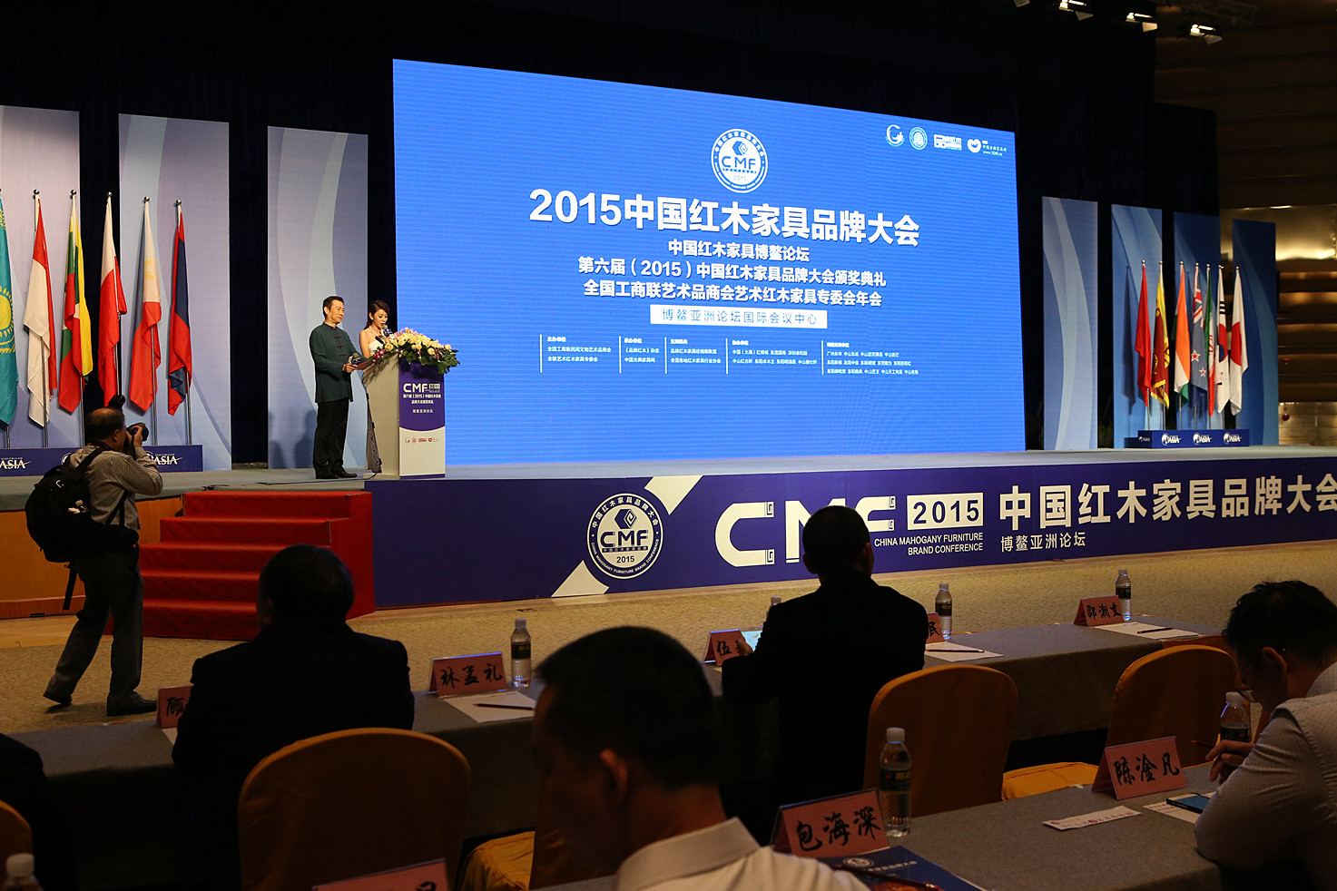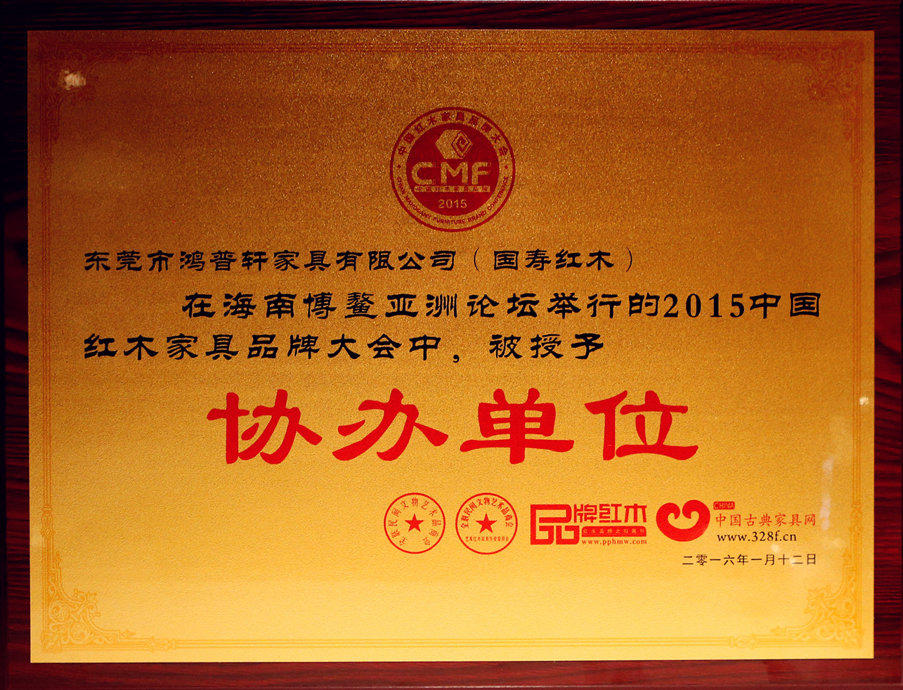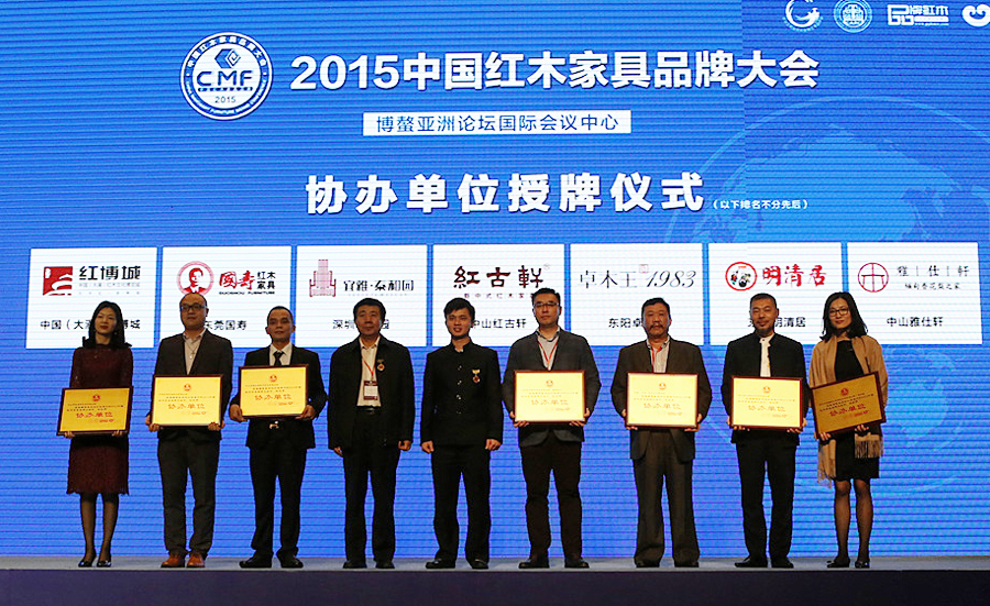 中国红木家具品牌大会由全国工商联民间文物艺术品商会、全联艺术红木家具专委会联合主办,《品牌红木》杂志及中国古典家具网两大红木媒体联合承办,东莞鸿普轩家具(国寿红木)参与协办,并得到相关政府部门领导、红木家具各大产区龙头企业领袖、行业专家学者等数百人共同见证了“红木奥斯卡”的博鳌盛宴。
