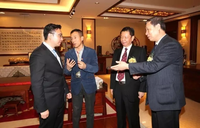 中国家具协会副理事长刘金良(右一)、中国家具协会传统家具专业委员会秘书长姜恒夫(左二)莅临发布会现场