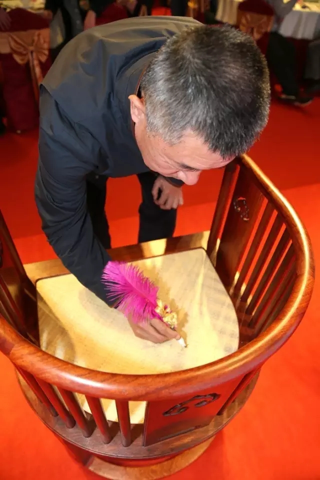 签字的国寿椅在即将落成的国寿红木博物馆上留存展览