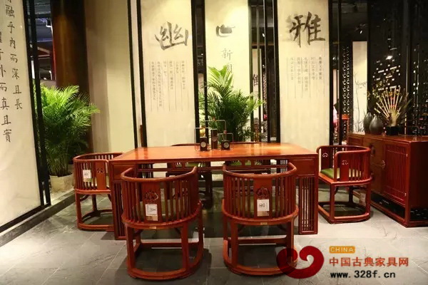 "新中式"家具不是对古典中式的简化,也不是中式元素的简单叠加,而是从中国传统文化的深层内涵中挖掘精髓(图为国寿红木东莞名家具展展出的新明式红木家具品牌——世外桃源新品)