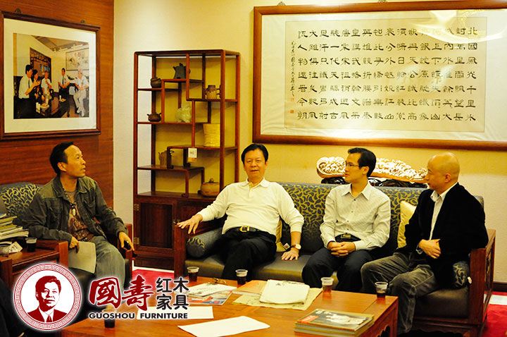 2014年11月6日星期四下午6时许,东莞市保利文化演艺团有限公司总经理吕冰先生,广东省书法家协会副主席、东莞市文化广电新闻出版局副局长周汉标先生,厚街镇党委委员林景畅先生等一行在国寿红木董事长陈国寿先生、副总经理王耀佳先生的陪同下莅临我司参观指导。