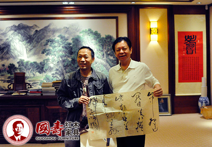 东莞市鸿普轩(国寿红木)家具有限公司董事长陈国寿先生(右)和广东省书法家协会副主席周汉标先生(左)合影留念