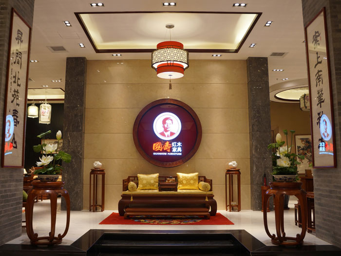 国寿红木莞城旗舰店位于东莞市城区东纵路天虹广场,面积1500多平方,装修投入上千万元。鸿普轩家具有限公司秉承中国儒家禅文化与当今生活相融汇的理念,务求旗舰店整体风格充满着浓厚的中国古典气息。经悉心打造和布局,旗舰店内陈列着"国寿红木"品牌的"祥云、东方丹云、一弯新月、宋韵、禅意东方、东方意境"等多个系列的最新产品和精品。巧妙的装修设计和陈列,让每位亲临该店的顾客充分享受和感受到红木家具的文化、渊源、品味和高雅。