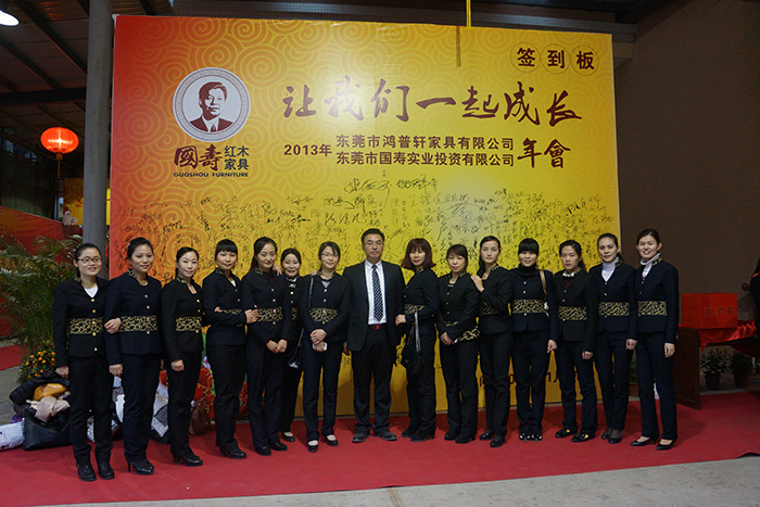2014年1月21日晚,由东莞市鸿普轩家具有限公司及东莞市国寿实业投资有限公司共同举办的“让我们一起成长”——2013年度总结晚会在东莞市鸿普轩家具有限公司隆重开幕。