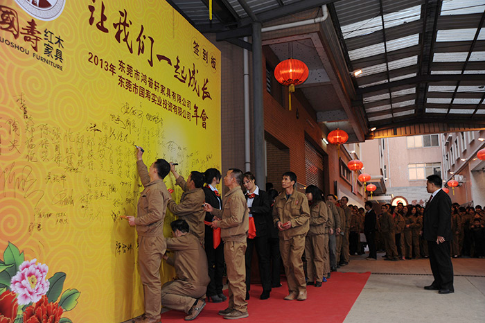 鸿普轩家具有限公司全体员工在签名墙上签名