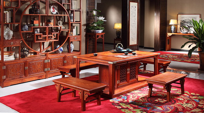 国寿红木家具——东方丹云红酸枝茶台,红酸枝制品稀缺性决定了其高价值的投资性质