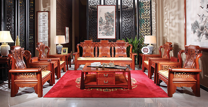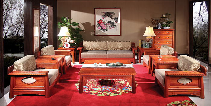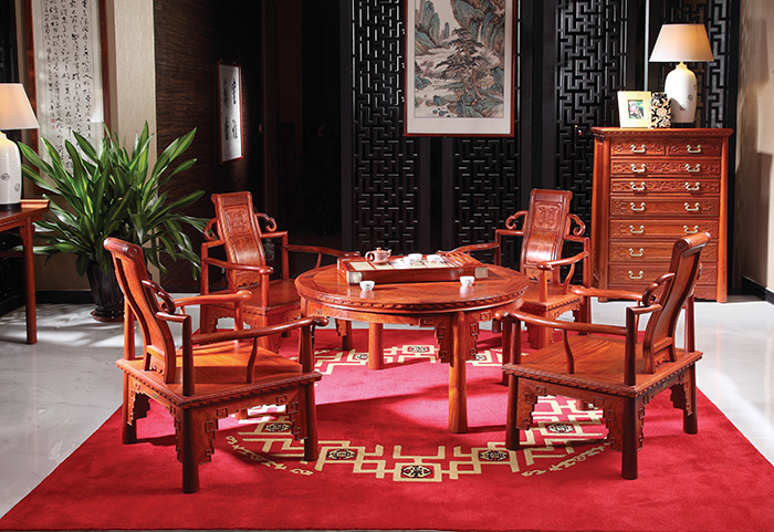 国寿红木花梨木家具均100%使用全缅甸花梨木(大果紫檀)芯材精制而成