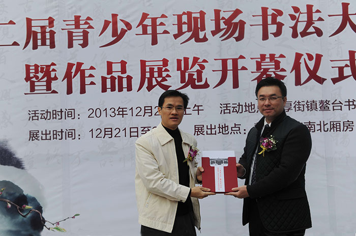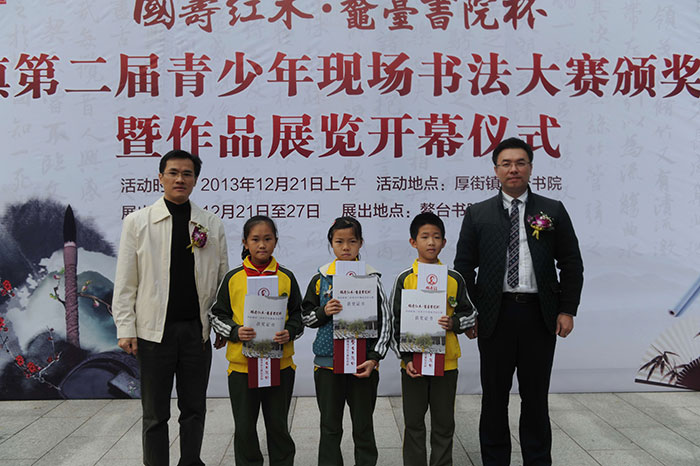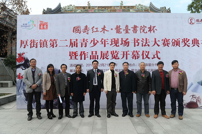 12月21日,厚街镇鳌台书院高朋满座,为“国寿红木.鳌台书院杯暨厚街镇第二届青少年书法大赛”举行隆重的颁奖仪式。出席本次活动的领导嘉宾有:厚街镇党委委员林景畅、东莞市书法家协会副主席罗派均、厚街镇宣传教育文体局局长王国榆等,国寿红木副董事长陈淦凡出席并为本次颁奖仪式致词,随后,与出席仪式的领导、嘉宾共同为获奖青少年颁发荣誉证书及奖品。