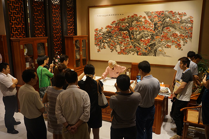书画大师李国基先生现场挥毫泼墨,为国寿红木及现场宾客题字