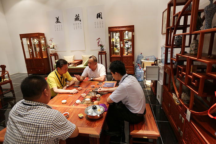 国寿红木家具董事长陈国寿先生(左二)悉心聆听客户需求