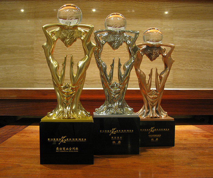 国寿红木本次展会共获得最佳商业空间奖--金奖、展位设计--银奖、“宋韵”系列大厅沙发套装则获得了展览会中式古典系列“铜奖”。