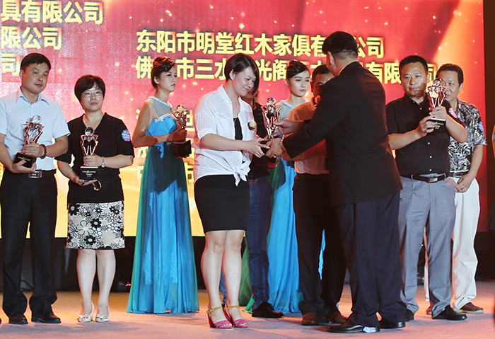 2014年9月7日晚,第32届国家名家具(东莞)展览会闭幕暨颁奖晚宴隆重举行。本次展会汇聚全国各大知名品牌家具厂商及全球参观商,展会的规模空前宏大。各个展馆内参展人数达到前所未有。作为中国十大红木家具品牌的国寿红木此次更是大放异彩,连连斩获金、银、铜三大奖项,国寿红木家具董事长陈国寿先生、国寿红木设计总监陈映雄女士出席了本届家具展的颁奖晚宴并上台领奖。