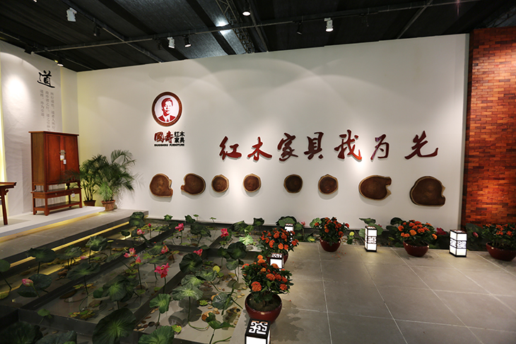 国寿红木展馆现场——"红木家具我为先"极为引人注目