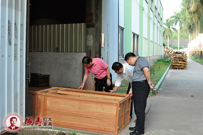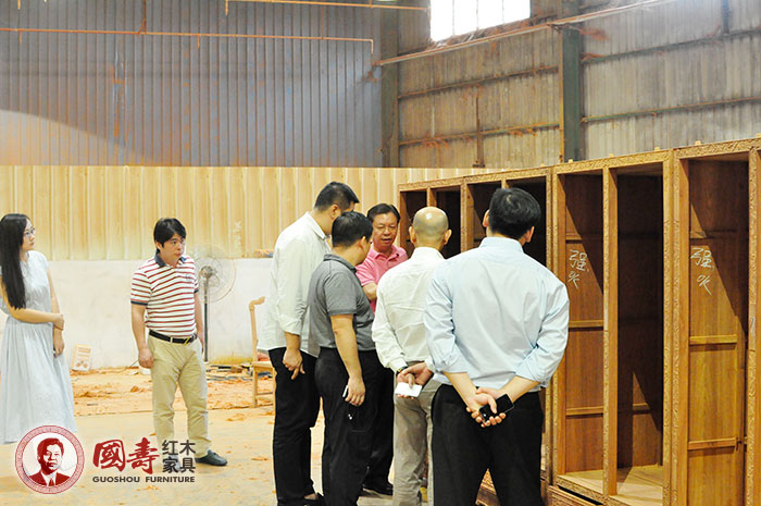 国寿红木董事长陈国寿先生带领大家参观国寿红木家具拼装部